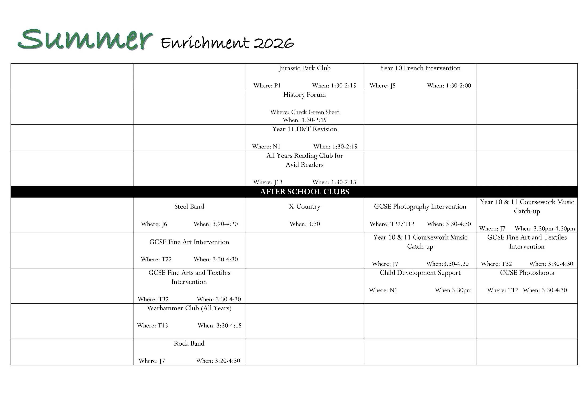 Please click here to see a plan for our enrichment days in the 2025/26 academic year.